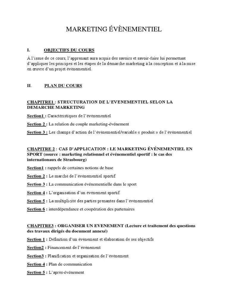 31/05/2006 · l'événementiel sportif marketing du sport 31 mars 2006 plan de l'exposé définition de l'événement le marché de l'événementiel l'organisation d'un événement sportif pourquoi communiquer par l'événement? 3 exemples d'événements sportif définition événement = lieu où des hommes et des femmes se rassemblent dans une sorte de célébration collective,. 31/05/2006 · l'événementiel sportif marketing du sport 31 mars 2006 plan de l'exposé définition de l'événement le marché de l'événementiel l'organisation d'un événement sportif pourquoi communiquer par l'événement?. Une organisation préalable (par opposition à une situation accidentelle ou improvisée), une certaine limite de temps et de lieu (les courses autour du monde à la voile sont à la …